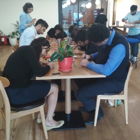 Participants do not need prior artistic abilities. All they need is paper, pencils and pens. Participants who came for workshops saying, they cannot even draw a straight line, constantly remain in touch with brilliant artwork and a more positive state of mind. The youngest student has been 5 and eldest 90 years, with a mix of everyone else in between.