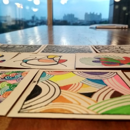 Having certified with the Zentangle teachers’ training course in the US and experiencing results of finding focus and mindfulness through a creative process. I found myself to be much calmer and more focussed. I knew if I could find such joy, positivity and gratitude towards life, it was time to take my art methods to a wider audience. Apart from Zentangle I designed many simple art methods that help participants achieve stillness of the mind.